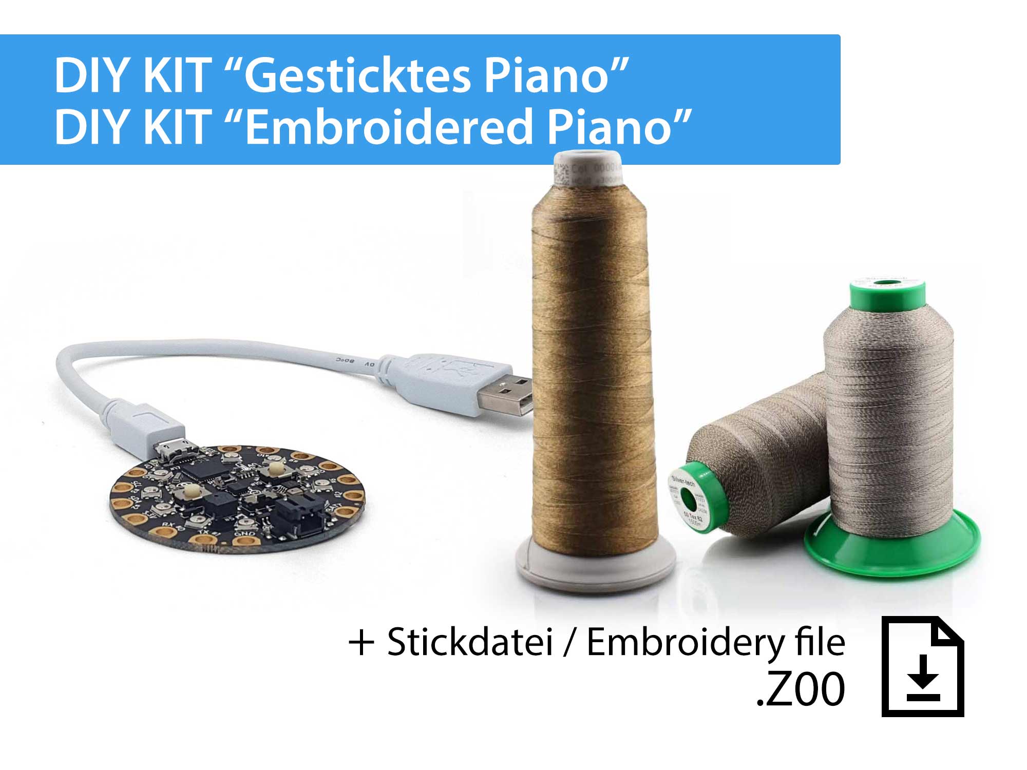 Sie wollten schon immer ein Smart Textiles selber basteln? Wie wäre es mit unsrem ‘Do-It-Yourself-Kit' für das Gestickte Piano? Ein Spaß für Jung und Alt und sehr leicht herzustellen. Dieser beinhaltet alles, um Ihren ersten funktionsfähigen interaktiven Prototypen zu realisieren.