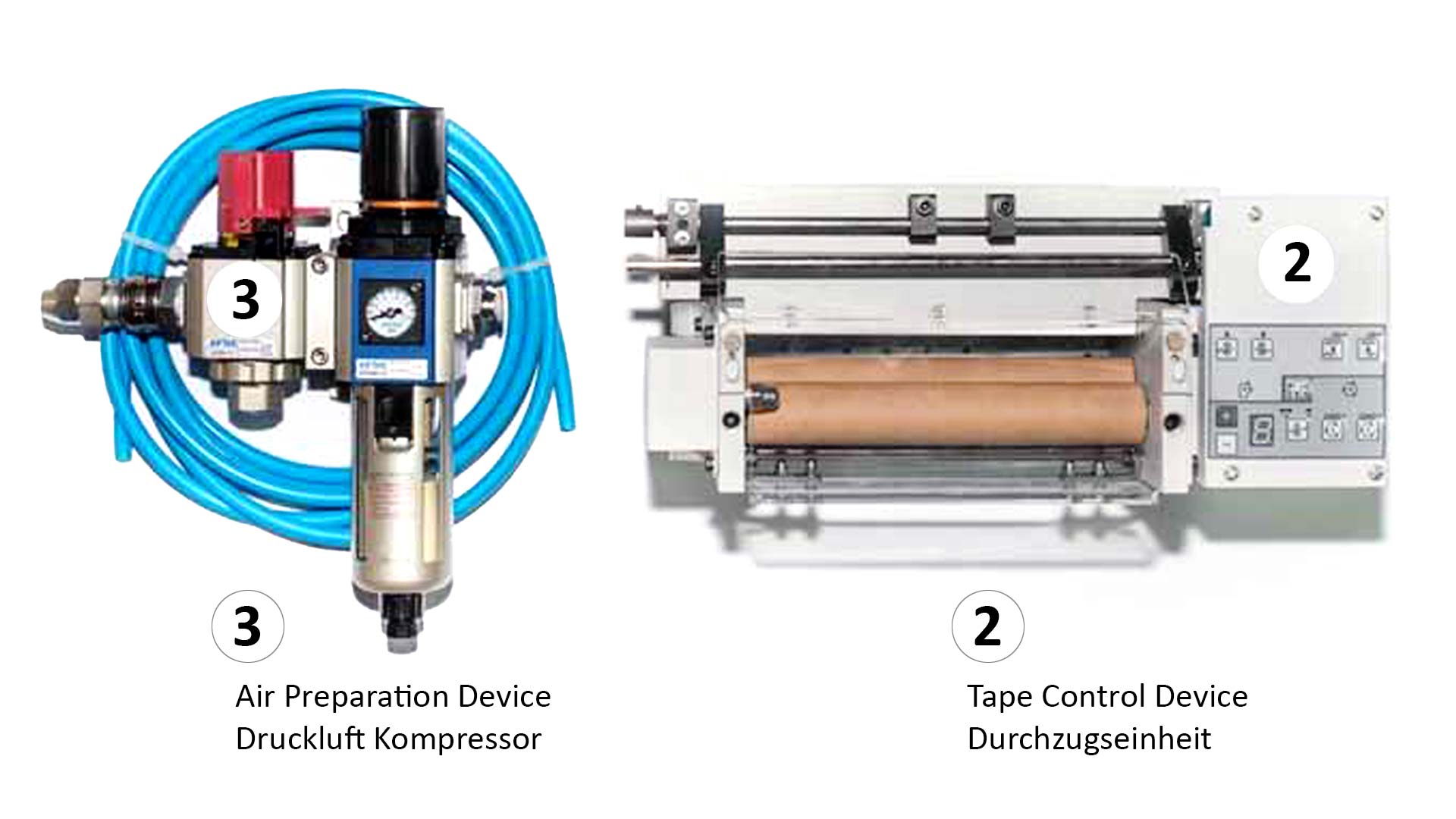 - Endproduktaufnahme in Behälter (BASKET, Standard) oder durch automatische Aufrolleinheit (optional)