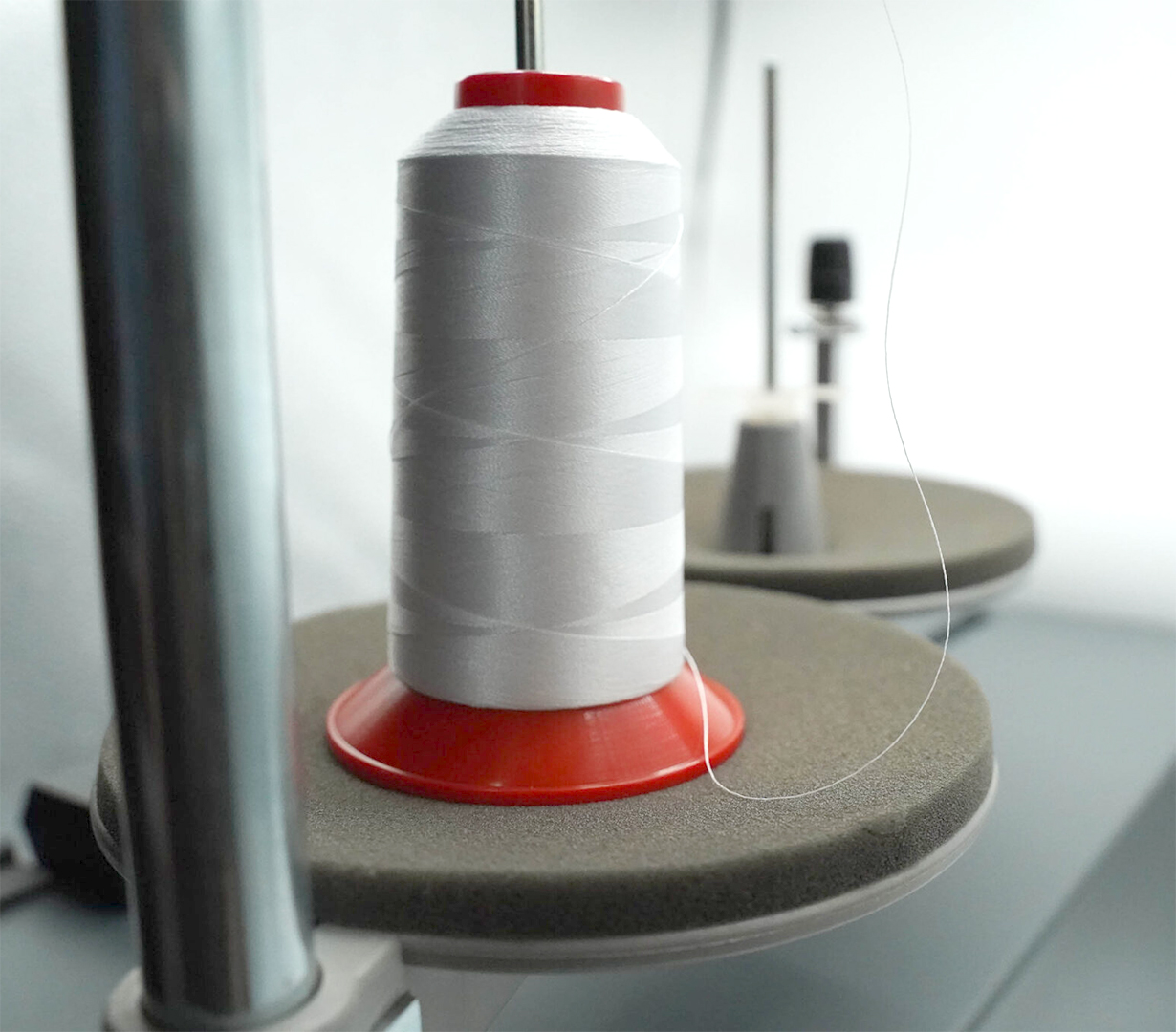 The bobbins can be wound with yarn from a cone of 5,000 metres, for example. Once the yarn has been wound onto the bobbin, it is cut fully automatically. You can now use the bobbins for your embroidery machines without any further work.
