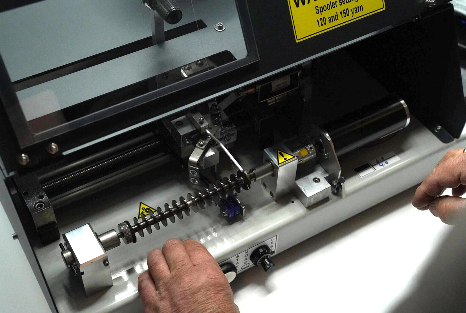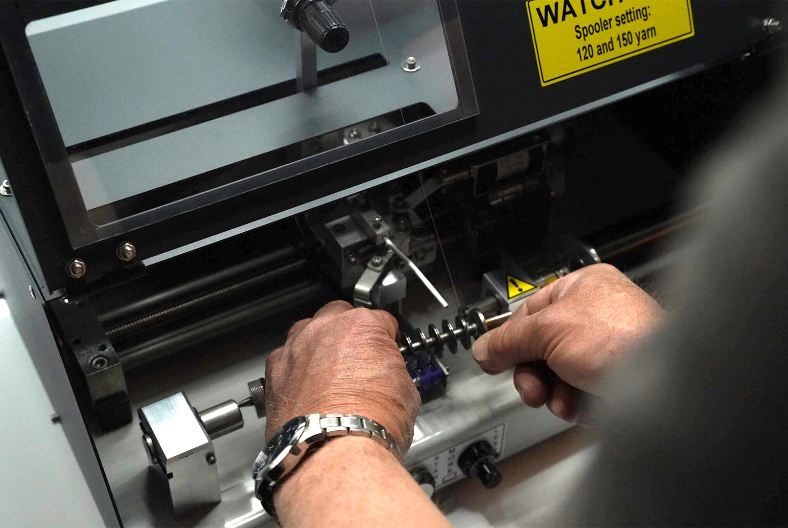 The TGEE Spooler 2.0 automatically winds up to 15 bobbins of yarn in a single operation, whereas other machines can only process one bobbin at a time.